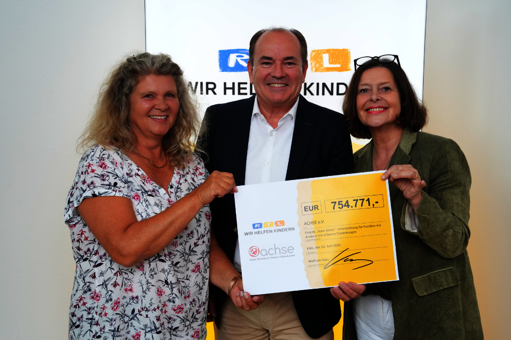 "Wir sind unendlich dankbar und stolz, dass wir einen so hohen Spendenbetrag der Stiftung RTL - Wir helfen Kindern erhalten haben. Wir freuen uns wahnsinnig, dass wir endlich mit dem Projekt "Team Zebra" starten können, denn ganz viele betroffene Kinder und ihre Eltern warten auf unsere Unterstützung." So Geske Wehr. Die langjährige Vorsitzende der ACHSE und selbst Mutter eines betroffenen Sohnes.