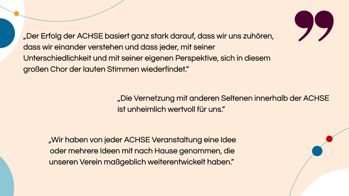 Menschen mit Seltenen Erkrankungen und ihre Angehörigen brauchen - je nach Erkrankung - neben medizinischer Versorgung auch finanzielle, therapeutische und soziale Unterstützung. Die Menschen in der ACHSE Selbsthilfegemeinschaft kennen diese Herausforderungen aus eigener Erfahrung und gehören deshalb zu den besten Ansprechpersonen.