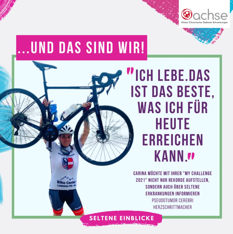 Manchmal ist es wichtig seinen eigenen Blickwinkel auf die persönliche Krise zu verändern, damit neue Kraftquellen entstehen können. Ich habe eine solche Kraftquelle im Sport gefunden. Seit letztem Jahr bin ich dabei, ein tolles Projekt zu verwirklichen, die „My Challenge 2021", mit der ich nicht nur einen Rekordversuch verwirklichen, sondern auch zeigen möchte, was mit der Erkrankung und auch dem Herzschrittmacher möglich ist. Die besondere Herausforderung besteht aus einer mehrtägigen Biketour in und um Garmisch-Partenkirchen, die im Rahmen von mehreren Etappen vom 11. bis 17. Oktober 2021 stattfinden wird.