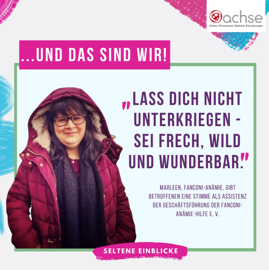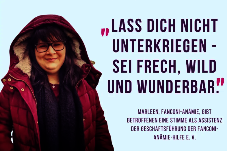 Ich habe gelernt, dass ich auch mal schwach werden darf. Dass ich eine Pause einlegen darf und nur die Hälfte erledige. Ich habe meine Erkrankung zu meiner Arbeit gemacht und versuche das Positive zu sehen. Ohne die Fanconi-Anämie hätte ich nicht so viele wundervolle Menschen auf der ganzen Welt kennengelernt.